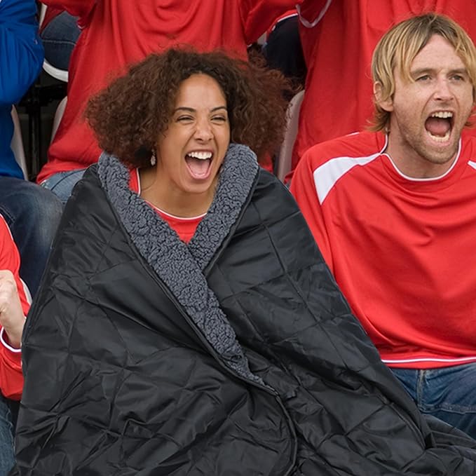 • Windproof & Water-resistant Back: Windproof blanket for bleachers, features water repellent backing. It is your ideal partner to keep dry in a rainy camp site or wet grass for picnic or sandy beach. Please note that the plush sherpa lining is not waterproof.
