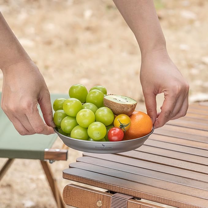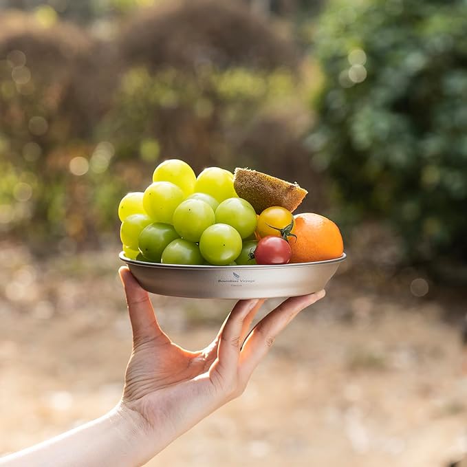 • Lightweight & Super strong: Bowls and Plates are very light, great for travelers carrying in your backpack. It also comes with a mesh storage sack for easy carrying; The best part is that the titanium bowl is light and super strong at the same time. High hardness, no deformation, solid structure.