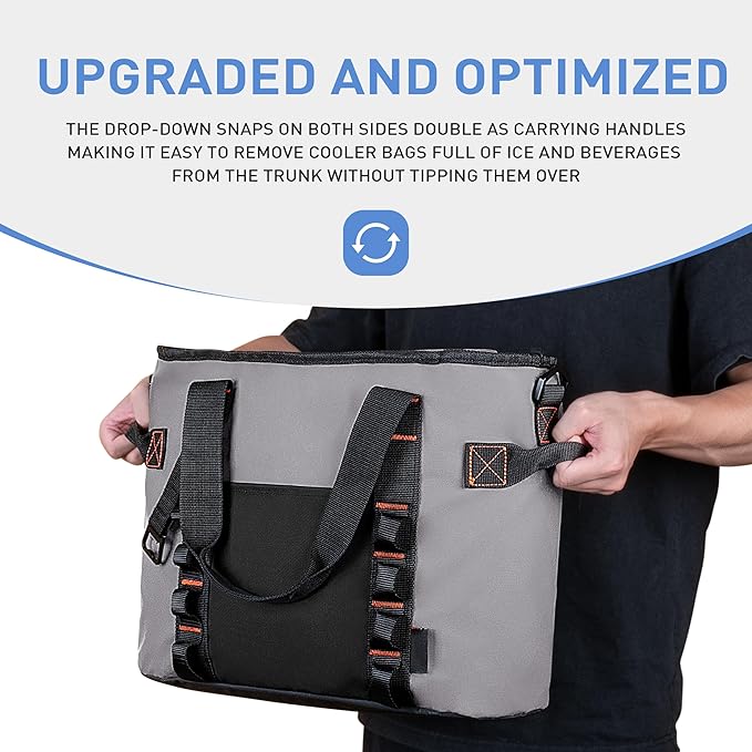 • Upgraded Grab Handle: This insulated cooler bag stands out because it features a grab handle on both sides, allowing you to remove the cooler bags filled with ice and beverages from the trunk without tipping them over. This ensures that when you go camping and picnicking, you safely bring your refrigerated food and drinks to the person you love.