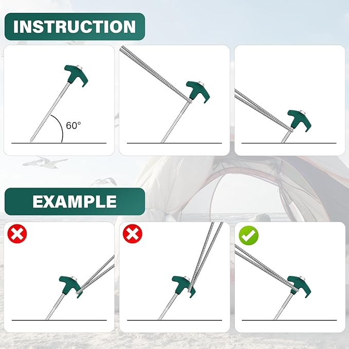 • Excellent Grip --- The threaded design of our heavy duty metal tent stakes ensures that they grip the ground firmly and tightly, preventing any unwanted movement or sliding. Allowing you to fully enjoy your outdoor adventure.