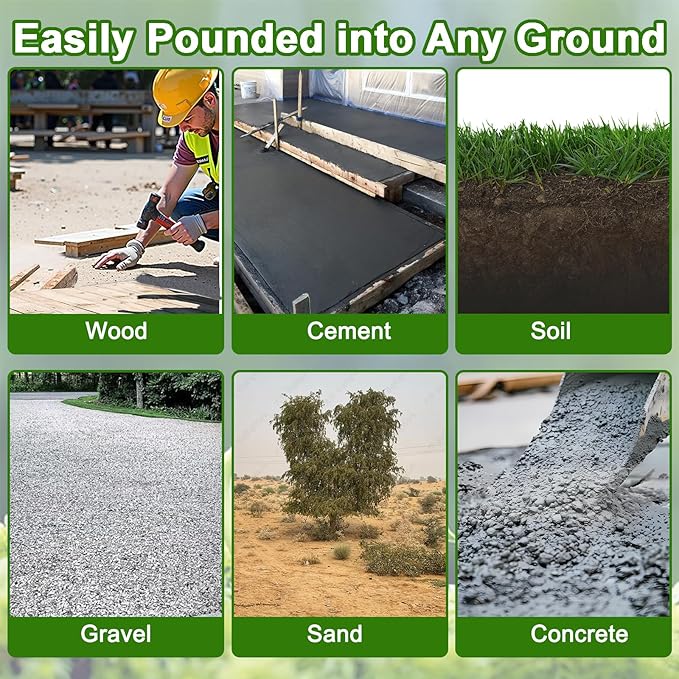 • Wide Applications--These heavy duty stakes for high wind work great for securing tents, trampolines, soccer goals, patio furniture in any weather and also perfect for pinning down weed fabric on tough soil or keeping outdoor decorations from blowing away