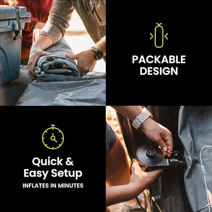 • Say goodbye to restless nights and uncomfortable camping experiences. We've redefined the traditional air mattress, combining innovative design with cutting-edge technology to provide a restful night's sleep under the stars.