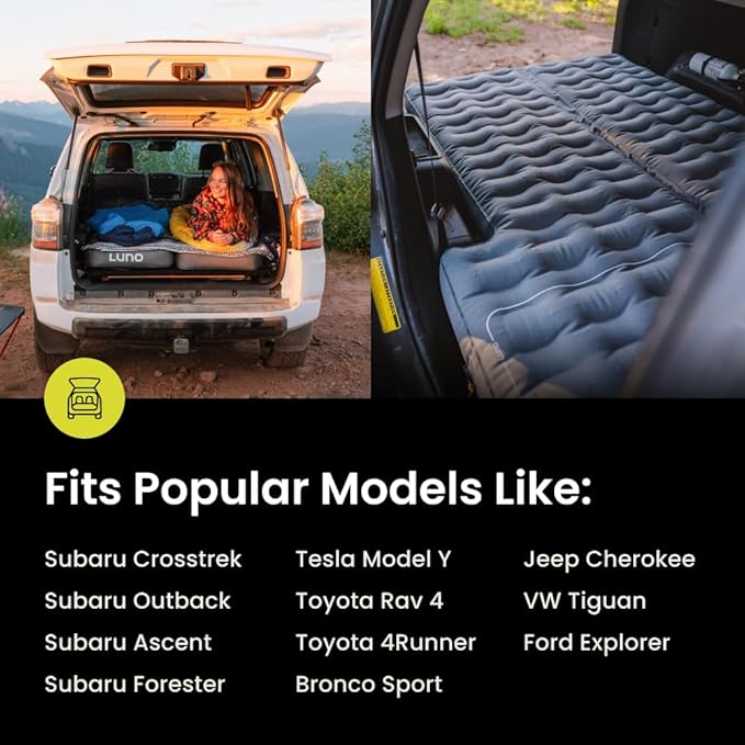 Luno Camp Air Mattresses 2.0 – Inflatable Car Bed w/Built-in Pump – Foldable Mattress & Sleeping Pad for Camping – Air Mattress for Tents – Durable Foam Camping Bed – Fits Ford Bronco Sport 2021+