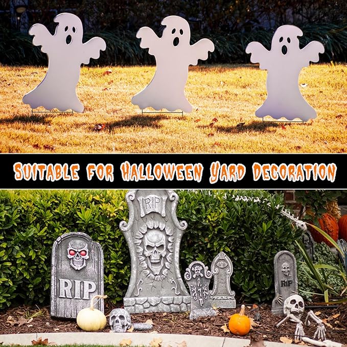 • Stable and Tight Effect:Our Halloween tombstone stakes are more sturdy, durable and waterproof than other kind stakes, you can reuse it many times without breaking or corrosion in the ground; Our Halloween tombstone stakes can fix your decorations tightly and you don't need to worry that your decorations will be fall down by strong wind or bad weather or rushed down by pets, which can keep your decorations stable, and continue to use it in the coming year.