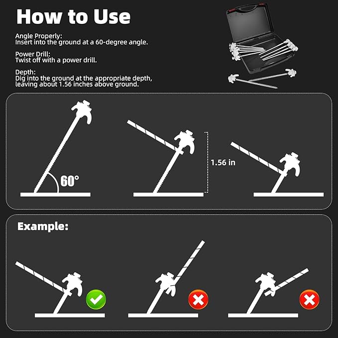 • BONUS INCLUDED: Comes with a convenient carrying case and a 13mm hex drill bit, making transportation and setup a breeze. The durable carrying case ensures your stakes are always organized and ready for your next adventure.