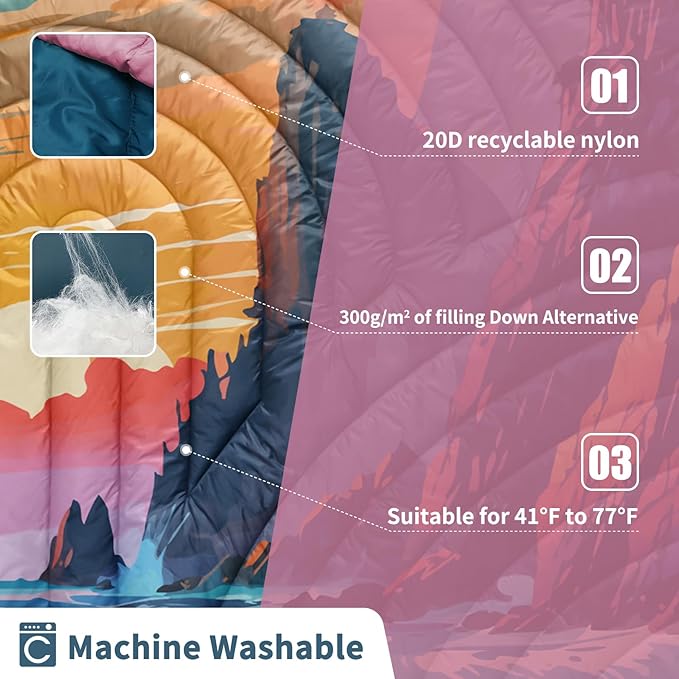 • LIGHTWEIGHT AND PACKABLE: The camping blanket measures 52*75 inches and measures 8*12 inches when packed. Weighing only 2 pounds, the products you buy include a camping blanket and a portable storage bag. This will be the ideal blanket for your outdoor, hiking and camping adventures.