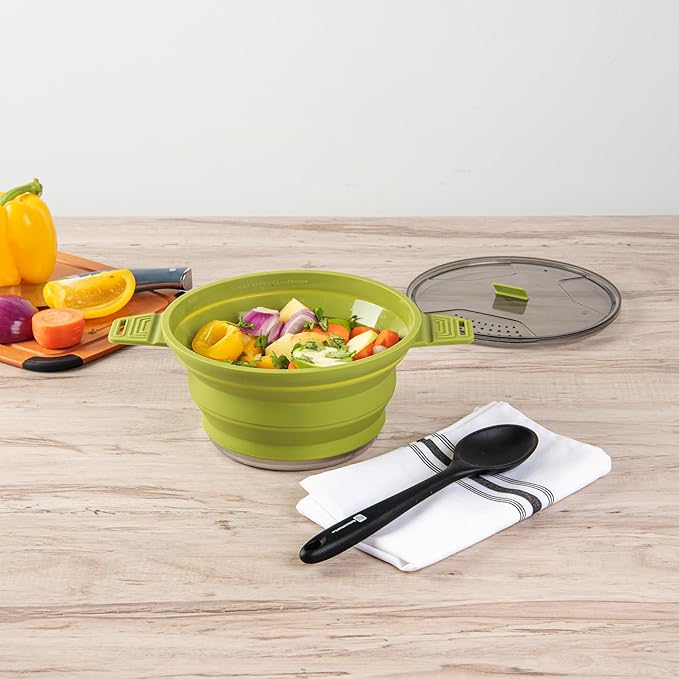 • PORTABLE & VERSATILE: This collapsible silicone pot is a game changer! Compact and lightweight, this pot is perfect for camping, hiking, or traveling. Your new favorite travel companion.