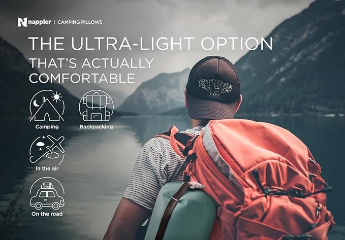 • ✅EASY TO CARRY AND KEEP CLEAN: Nappler camping & travel pillow is very lightweight and comes with a carry case to keep it clean. The snap loop in the back of the pillow makes it easy to clip it to your luggage or hang it in the car.