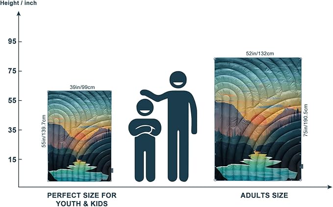 • LIGHTWEIGHT AND PACKABLE: The camping blanket measures 39*55 inches and measures 6*9 inches when packed. Weighing only 1.2 pounds, the products you buy include a camping blanket and a portable storage bag. This will be the ideal blanket for your outdoor, hiking and camping adventures.