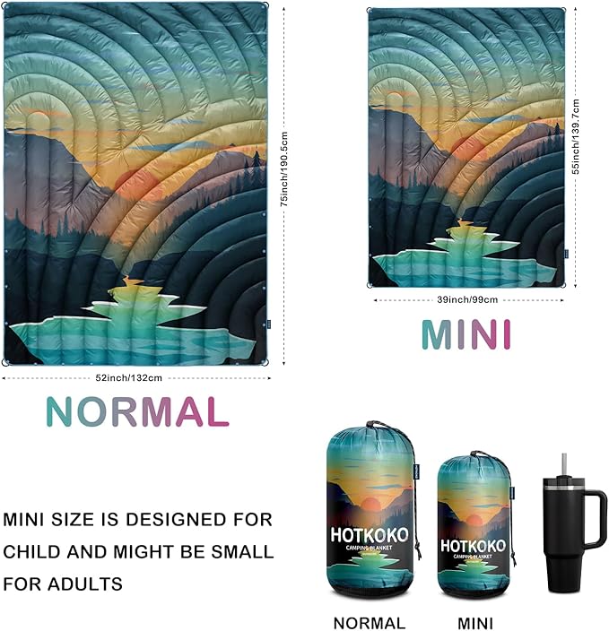 Camping Blanket,Lightweight Puffy Printed Camping Blanket Packable Outdoor Blanket for Camping,Traveling, Stadium, Hiking, Picnics