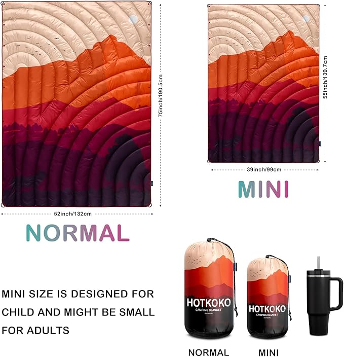 • LIGHTWEIGHT AND PACKABLE: The camping blanket measures 39*55 inches and measures 6*9 inches when packed. Weighing only 1.2 pounds, the products you buy include a camping blanket and a portable storage bag. This will be the ideal blanket for your outdoor, hiking and camping adventures.