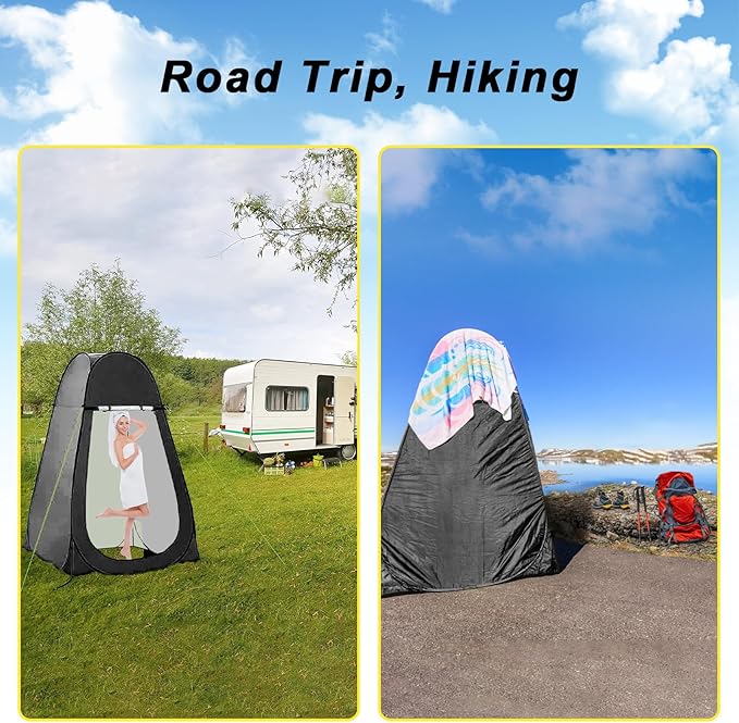 • Portable and Lightweight :The portable outdoor camping bathroom tent and the shower bag can unfold and fold in seconds,and store in the carry bag, weighs 6lb ,very convenient to carry .