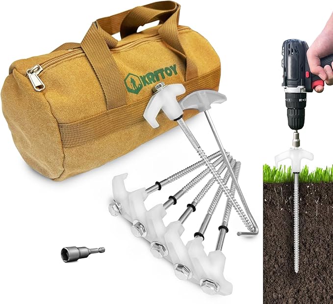 • ⛺【 HIGH QUALITY & DURABLE】 Made from high-quality steel with a threaded end for easy insert and superior grip when drilling into various hard surfaces. Whether it's grass, hard soil, gravel, or anything in between, it holds securely.