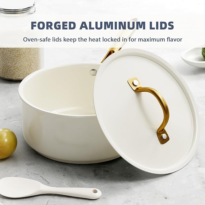 Pots and Pans Set Non Stick - VONIKI Ceramic Cookware Set with Cooking Utensils Set, Non Toxic Kitchen Cookware Sets Dutch Oven Pot with Lid Saucepan Set Sauté Pan Frying Pan Set for Cooking Gifts