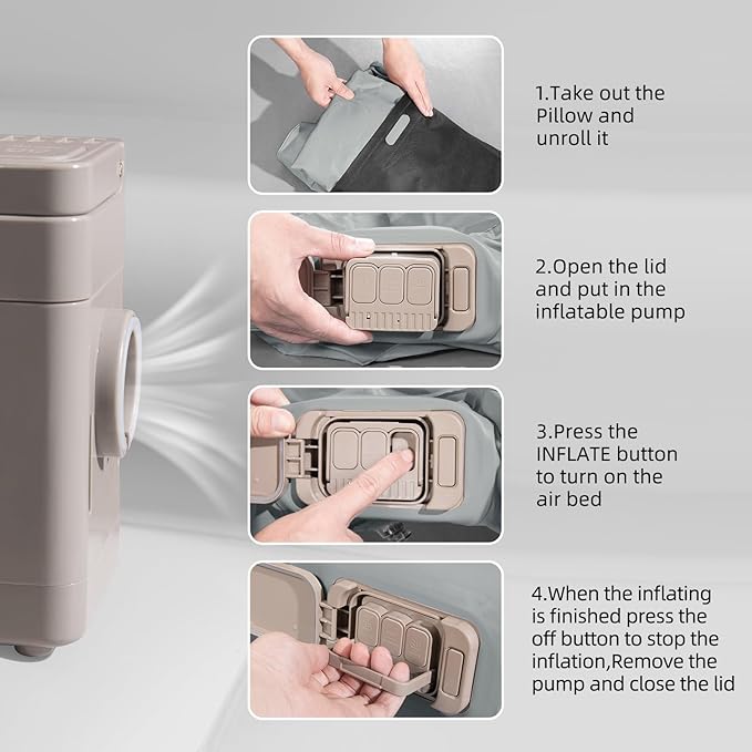 • 【Upgrade Wireless Inflator Pump】No manual inflation! No cords or external power needed! This car back seat mattress features a cordless electric pump with one-touch inflation/deflation. Letting you recharge anywhere—ideal for spontaneous naps during self-driving tour or long-distance journeys.