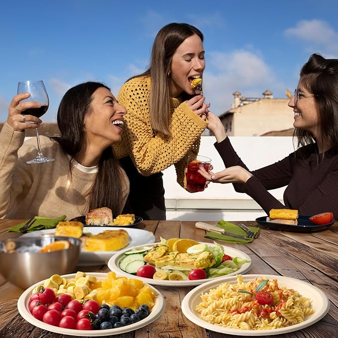 • Freezer and Microwave Safe: These compostable paper plates are naturally strong. Whether heated in the microwave or frozen, they stay intact. Be cautious of condensation with moist, warm food