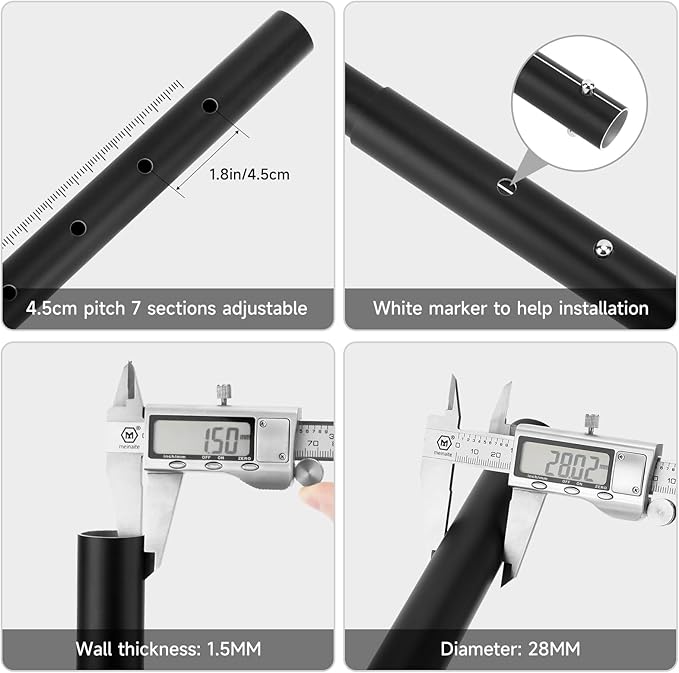 • Strong and durable tarp poles: Aluminum tarp poles is made of high-strength aluminum alloy, changed from anodized aluminum coating to powder coating, more corrosion-resistant and less prone to rust. With a diameter of 28 mm and a wall of 1.5 mm, the pole has a strong structure and is not easy to break. Whether in strong wind and rain, can be firmly fixed tent, will not collapse.