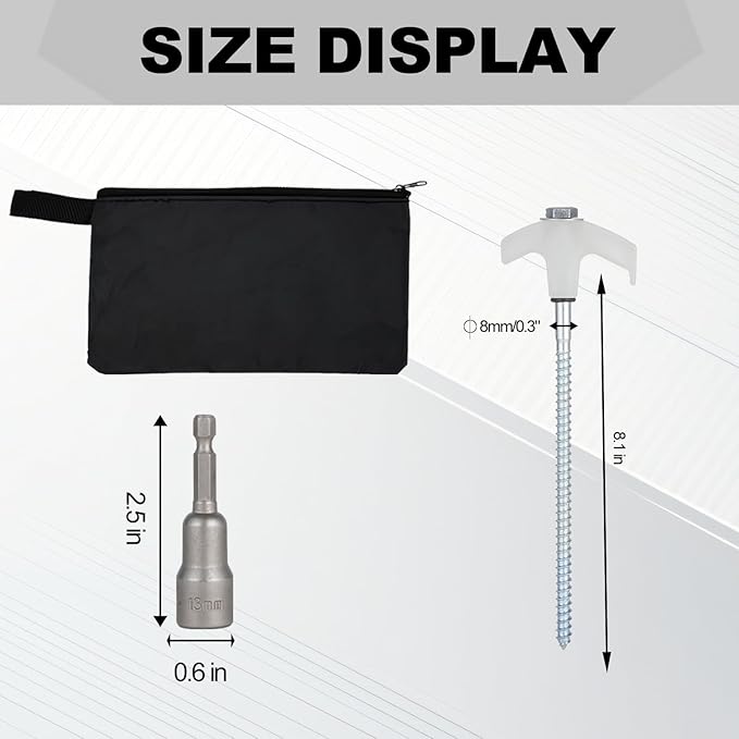 • Sturdy and durable:Camping stakes are 8 inches long and 0.31 inches in diameter.have threaded details for a stronger grip and can be adapted to a variety of surfaces, whether it's grass, hard soil, gravel or any other ground, he can hold on to it firmly.