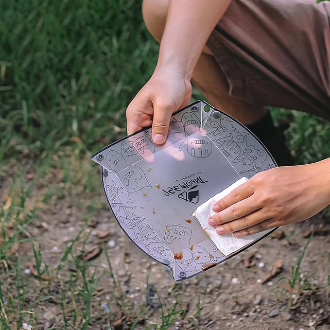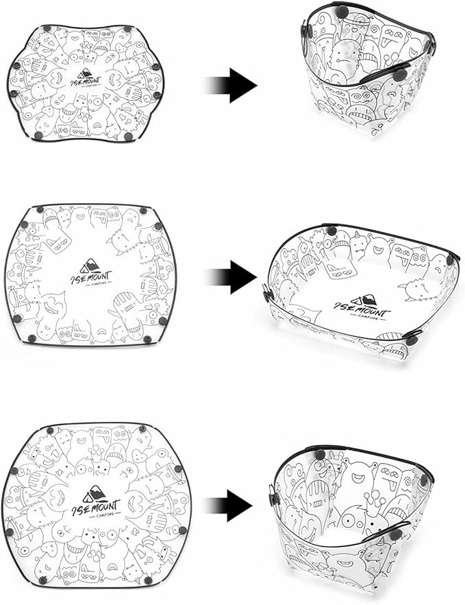 • Easy to install: The camping plates cups and bowls set have a transparent design with cute and funny anime avatars on it, which is fashionable and interesting. The tableware has snap buttons, which turn into the shape of the tableware when it is buckled, making it very convenient to use.