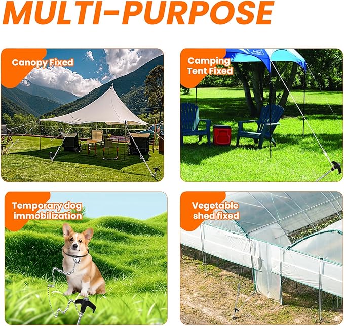 • Safe for Using: Our metal stakes offer enough strength under windy conditions and are suitable for use in grass, dirt, harder soils and sand; They are important for taking care of your outdoor equipment; Pointed items are included, it is recommended to wear tool gloves to avoid injury when using, and please keep it away from kids