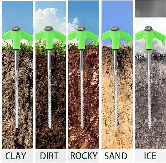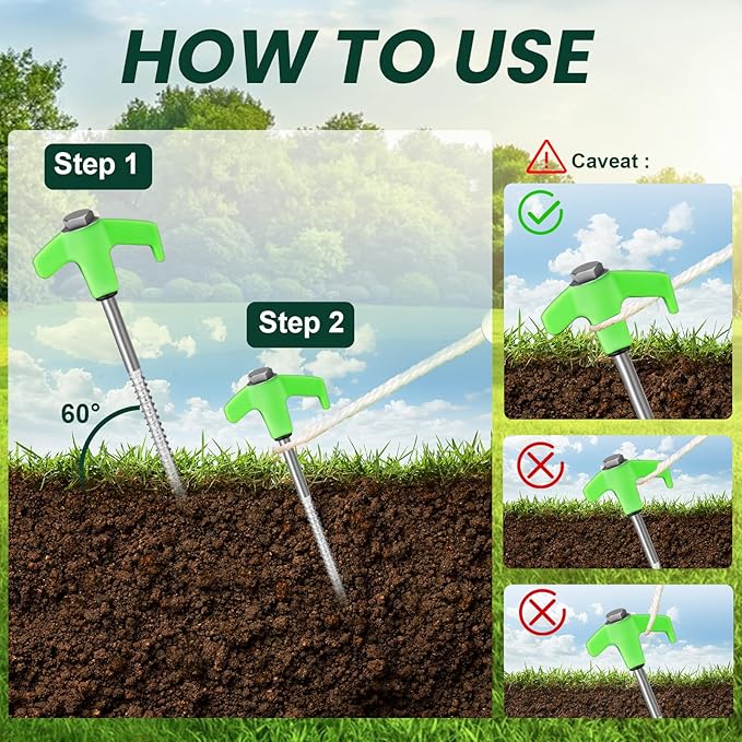 • Convenient and Practical: Our tent stakes have pointed tips that are easy to insert into hard soil, and the spiral design offers a stronger grip; With the help of a cordless drill or impact driver, these stakes will have your tents, canopy, awning or tarps grasp the ground more stable