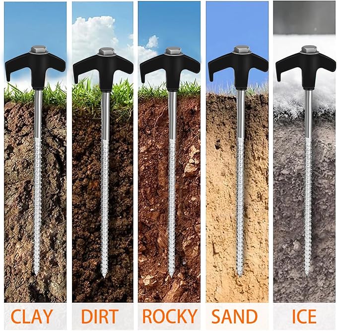 • Convenient and Practical: Our tent stakes have pointed tips that are easy to insert into hard soil, and the spiral design offers a stronger grip; With the help of a cordless drill or impact driver, these stakes will have your tents, canopy, awning or tarps grasp the ground more stable