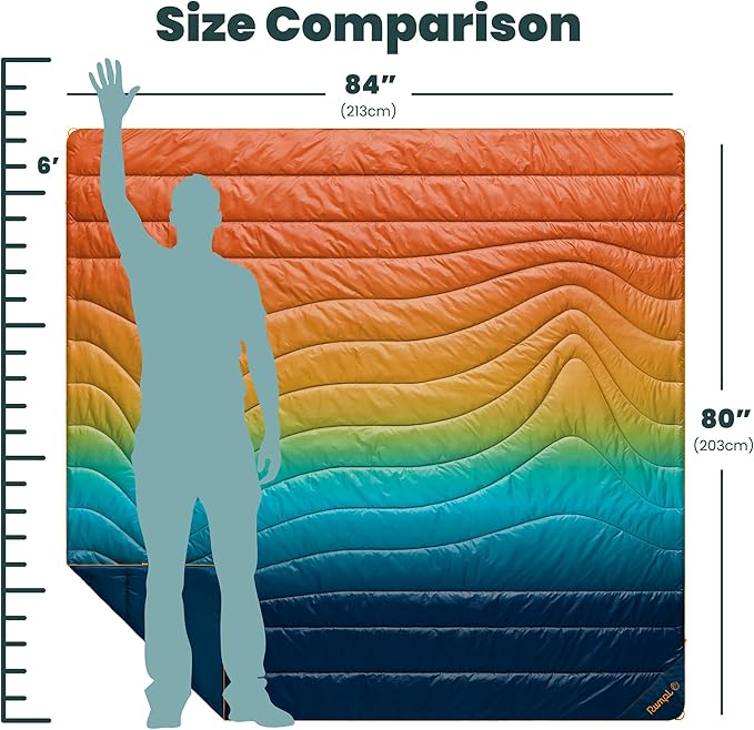 Rumpl Original Puffy Blanket - Warm Puffy Camping Blanket, 100% Recycled Polyester Insulation, Lightweight, Packable, Water-Resistant, Outdoor Puffer Blanket, 84"x80", Baja Fade