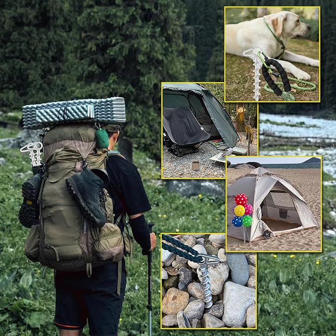 • With the ability to withstand high winds, these spiral anchor stakes provide the ultimate stability, giving you peace of mind during your camping trips, beach outings, and hiking adventures