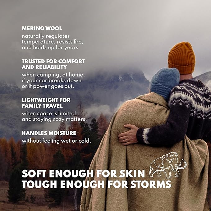 • Rugged Warmth and Versatility: The Woolly Mammoth Wool Blanket by Woolly Mammoth Woolen Company delivers exceptional warmth and versatility for camping and travel. Its blend of premium wool ensures durability in various outdoor conditions, making it an ideal camping blanket and travel blanket