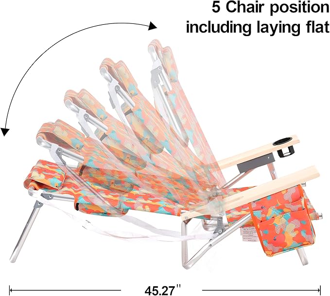 • UNIQUE AND FUNCTIONAL: Includes 4 pouch located on the side of the chair to store your keys, phone, and wallet.Features a folding towel bar on the back of the beach chair and an insulated cooler bag so you can enjoy an entire day of relaxation