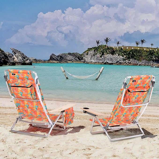 • FOLDING STRUCTURE: Thanks to its folding design, these high quality beach chairs are easy to carry for different occasions, such as beach, camping and fishing, etc.Meanwhile, the lightweight design allows you to move them effortlessly