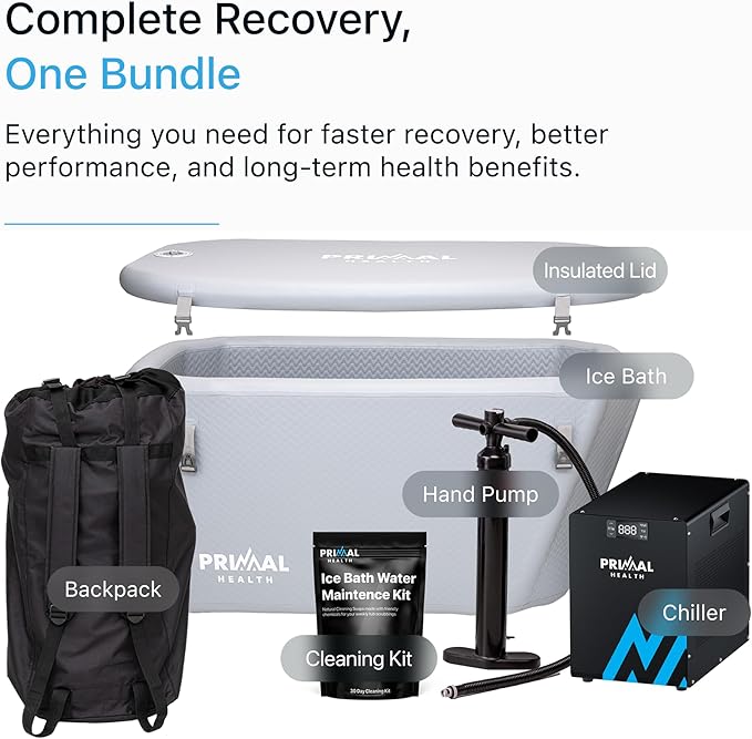 • All-in-One Cold Plunge Kit – Includes an inflatable ice tub, water chiller, and quick-connect fittings. Set up your cold water plunge tub indoors or outdoors in minutes. The perfect portable ice bath setup for home or travel.