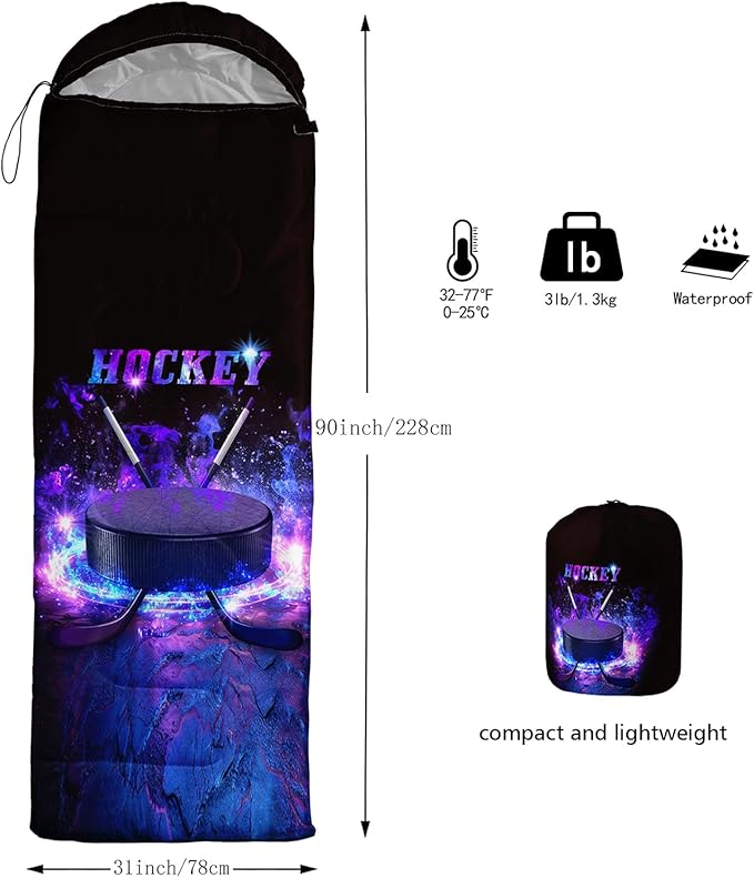 • Applicable For 3 Seasons: Our hockey sleeping bag can be used temperatures ranging from 32°F-77°F Except for the cold winter,sleeping bag have weatherproof to prevent from dampness,Size is 31 x 90 inches