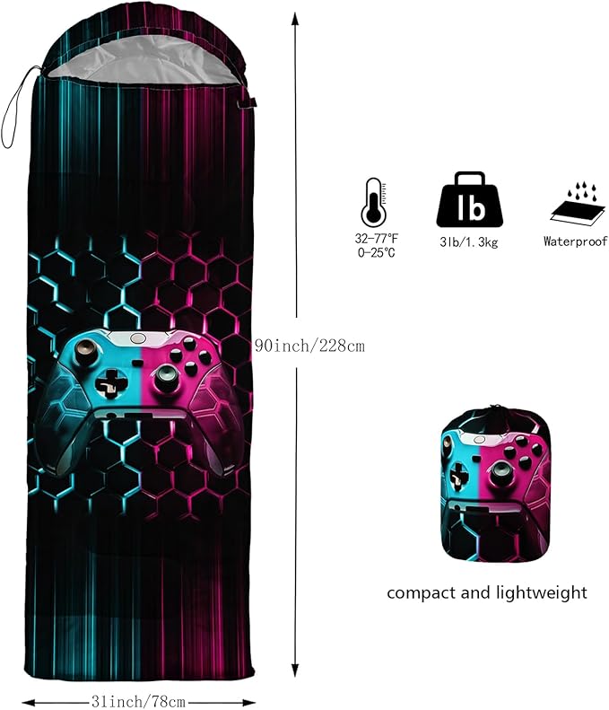 • Applicable For 3 Seasons: Our game console sleeping bag can be used temperatures ranging from 32°F-77°F Except for the cold winter,sleeping bag have weatherproof to prevent from dampness,Size is 31 x 90 inches