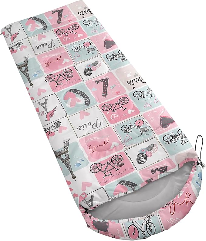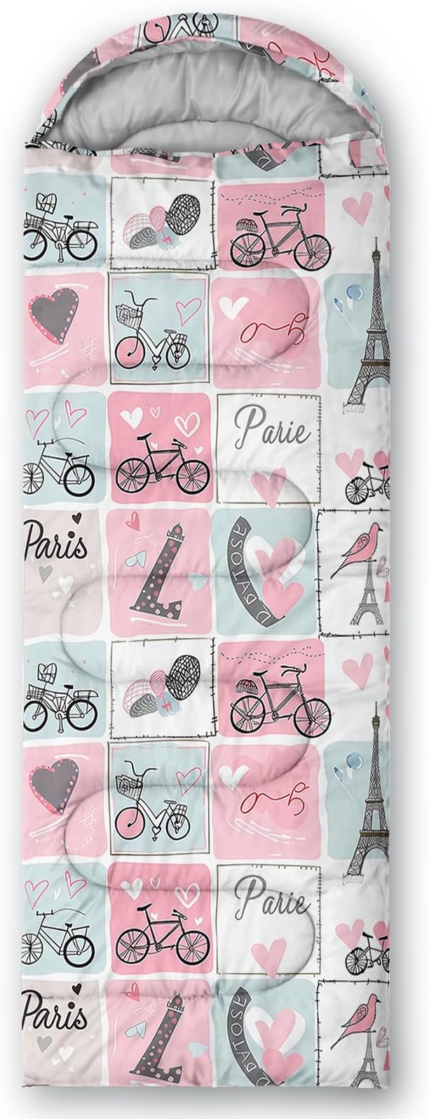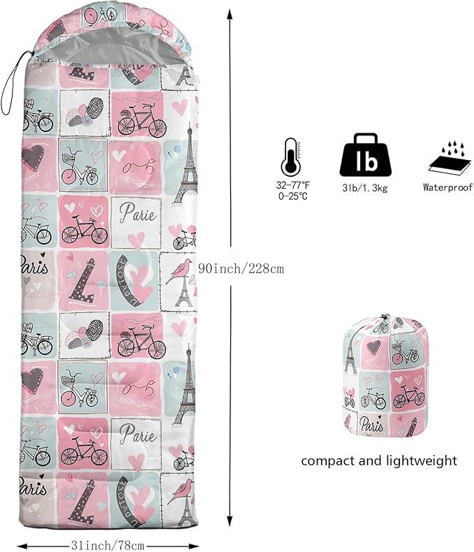 • Applicable For 3 Seasons: Our bike love print sleeping bag can be used temperatures ranging from 32°F-77°F Except for the cold winter,sleeping bag have weatherproof to prevent from dampness,Size is 31 x 90 inches