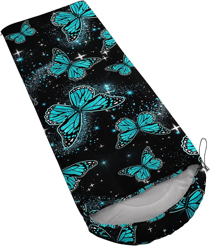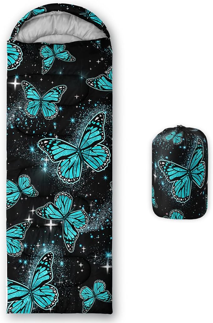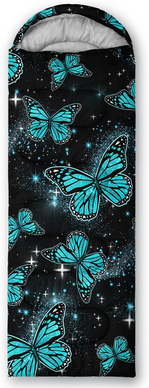 • 【Fits For 3 Seasons】: Size - 31 by 90 inches (W x D). Our Blue Butterfly sleeping bag can be used in 3 seasons with a design temperature of 32℉-77℉(0℃-25℃)