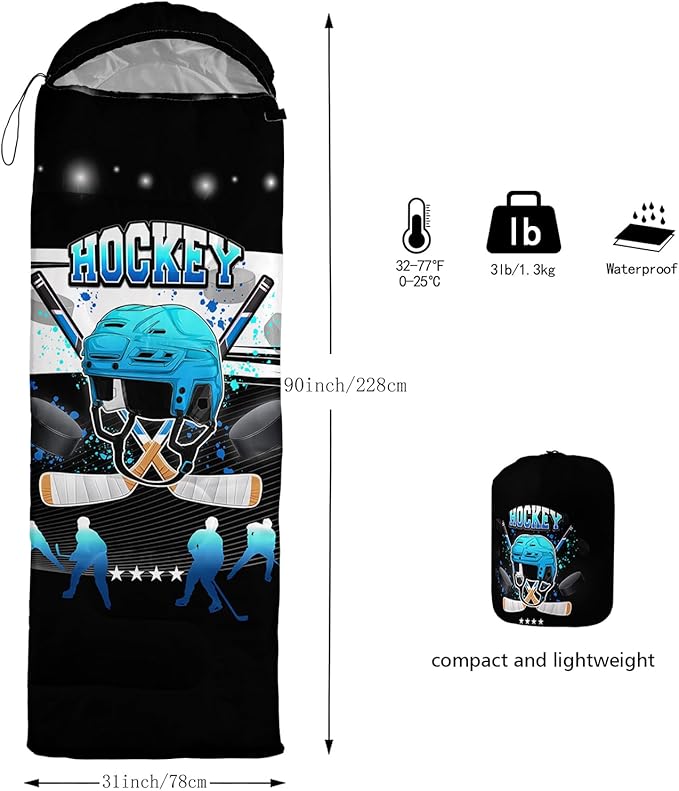 • Applicable For 3 Seasons: Our blue hockey sleeping bag can be used temperatures ranging from 32°F-77°F Except for the cold winter,sleeping bag have weatherproof to prevent from dampness,Size is 31 x 90 inches