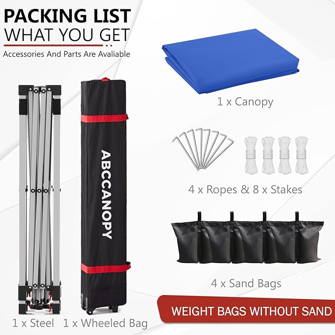 ABCCANOPY Outdoor Pop up Canopy Tent, 10x10 Instant Portable Canopy for Camping, Beach, Backyard (Royal Blue)