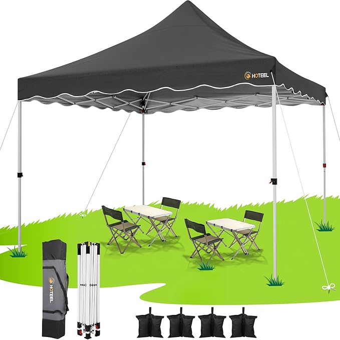 HOTEEL 10x10 Pop Up Canopy, Easy Setup Party Tent with Carry Bag, Weight Bag, Outdoor Portable Event Shelter for Backyard, Market, Black