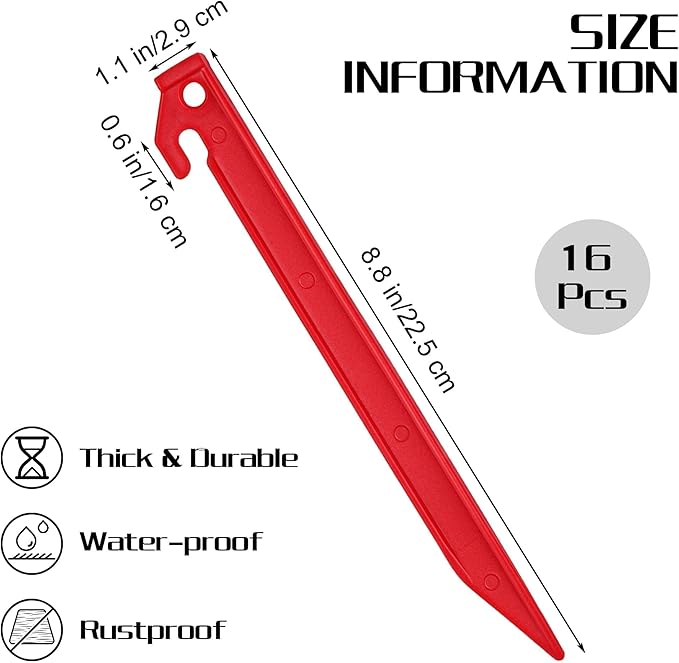 • Package Includes: contains 16 plastic inflatable ground stakes in red, offering a generous quantity to meet all your application needs; these Christmas Halloween inflatable stakes are an excellent solution for anchoring your inflatable displays, making them a valuable addition to your setup essentials