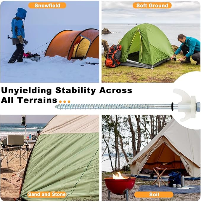 • Durable for Any Terrain: Made from high-strength materials, these 8-inch stakes feature deep threading for superior grip on grass, hard soil, and gravel. They offer solid support in windy conditions, keeping your tent firmly anchored wherever your adventure takes you