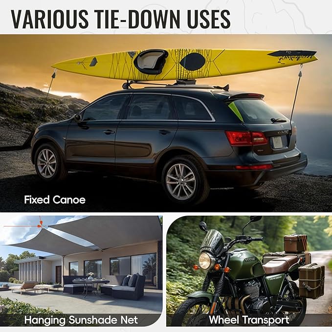 • 3. Easy Lock and Release:Simply attach the hooks, pull the rope tight, and the system automatically locks in place. Releasing is just as easy—press the Thumb Release Lever for a smooth, hassle-free disengagement