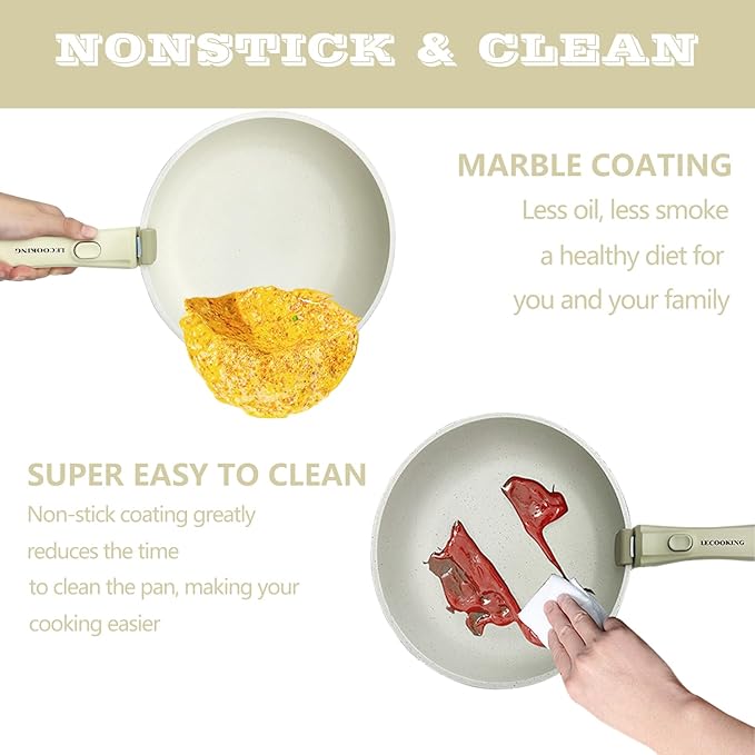 • PREMIUM NON-STICK COOKING PANS: Kitchen Cookware Sets made with premium non-stick coating to enhance your cooking and cleaning experience, cooking with less oil and easier cleaning, making cooking a great pleasure