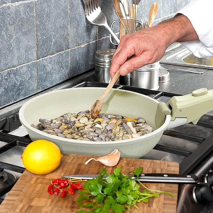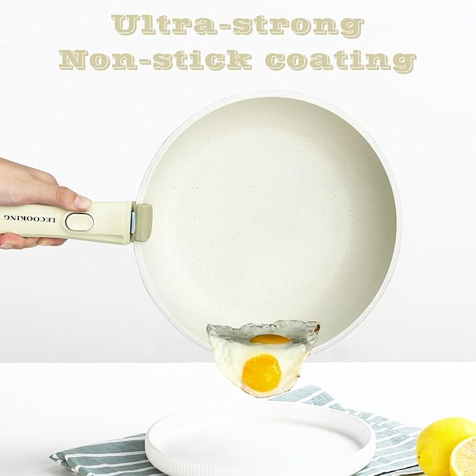• REMOVABLE HANDLE: Suitable for all pots and pans in the cookware set, you can easily transfer pots and pans from the stovetop to the table or oven.