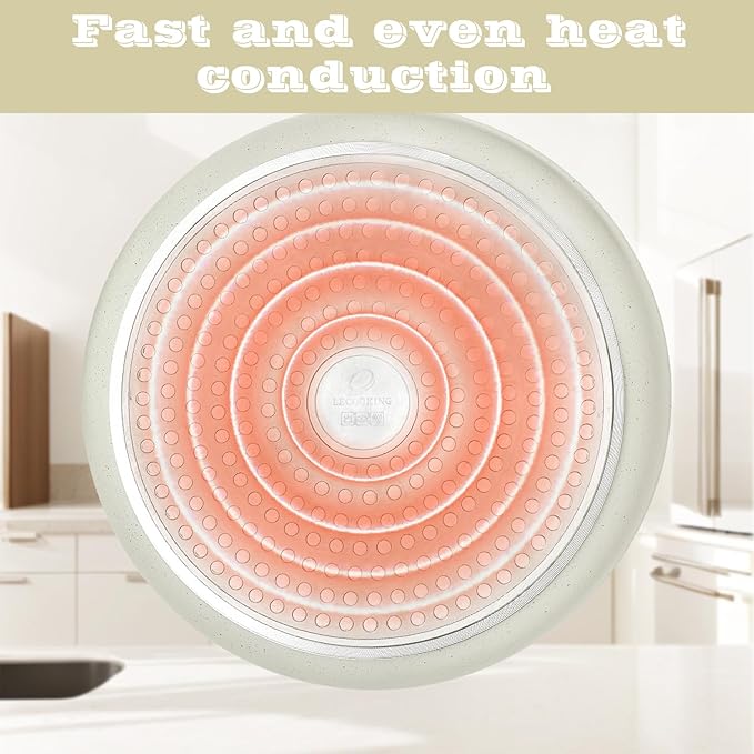 • EVEN HEAT CONDUCTIVITY: Pots and pans set has excellent heat conductivity, the food is evenly heated in the pot when cooking, the cooking effect is better.