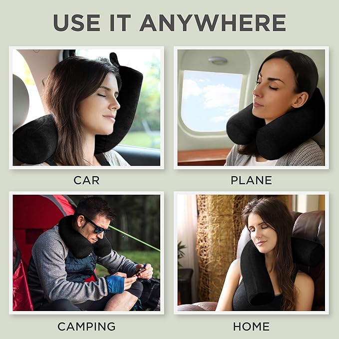 • 𝗠𝘂𝘀𝘁 𝗛𝗮𝘃𝗲 𝗣𝗹𝗮𝗻𝗲 𝗧𝗿𝗮𝘃𝗲𝗹 𝗘𝘀𝘀𝗲𝗻𝘁𝗶𝗮𝗹𝘀 - This flight pillow makes sleeping more comfortable long air plane flight, train, bus or car road trip. The luxury memory foam cushions the body and relieves painful pressure points for ultimate relaxation.