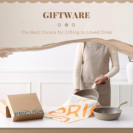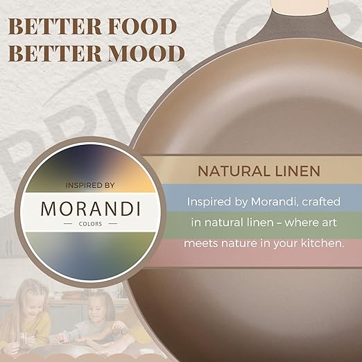 PRICUSIS Nonstick Frying Pan, 8/10/12 Inch Skillet with Stay Cool Handle, Stain/Scratch/Crack Proof, Induction Compatible & Oven Safe, Dishwasher Safe, PTFE & PFOA Free (12-Inch, Natural Linen)
