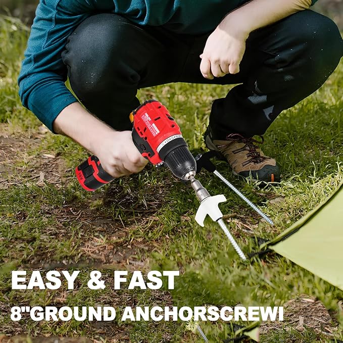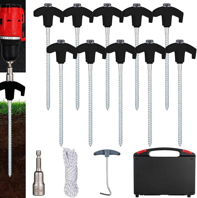 • STABLE AND DURABLE: The screw in tent stakes have threaded details for a stronger grip and can be adapted to a variety of surfaces, whether it's grass, hard soil, gravel or any other ground, he can hold on to it firmly and will always be your solid backing.