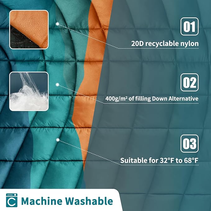 • LIGHTWEIGHT AND PACKABLE: The camping blanket measures 52*75 inches and measures 9*14 inches when packed. Weighing only 2.3 pounds, the products you buy include a camping blanket and a portable storage bag. This will be the ideal blanket for your outdoor, hiking and camping adventures.