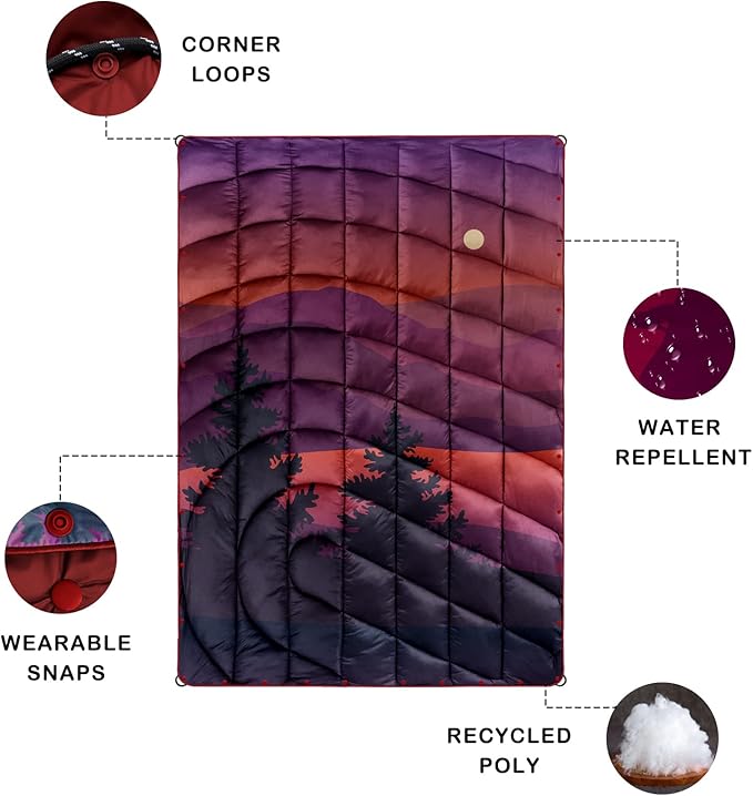 • MULTIFUNCTIONAL BLANKET: This blanket has multiple pairs of buttons and can be used as a comforter, rug, shawl, or sleeping bag. You can also put two blankets together to make a double sleeping bag.Perfect for camping, backpacking, hiking, climbing, travel, relaxation, picnics, beach trips, sports activities, airplane trips, and other outdoor activities.